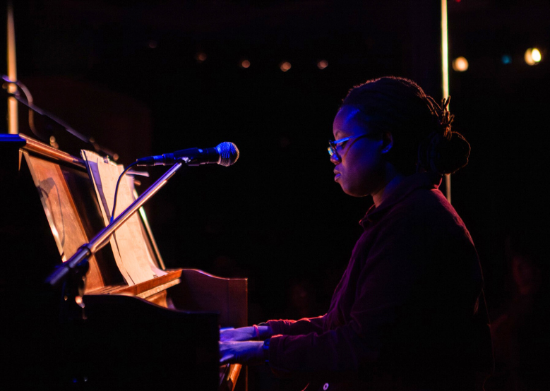 The Blue Room is a ~1600 sq. ft space with accessible stage, PA and speaker systems, microphones, mic stands, electric piano, projector, screen, stage lights, video camera, chairs, folding tables, bistro and cafe tables and more. All are available for use by Pay It Forward fellows for residency and events. Tech assistance for performances will be provided.