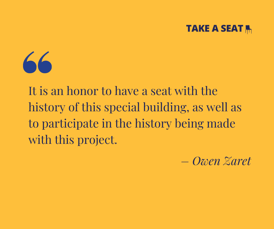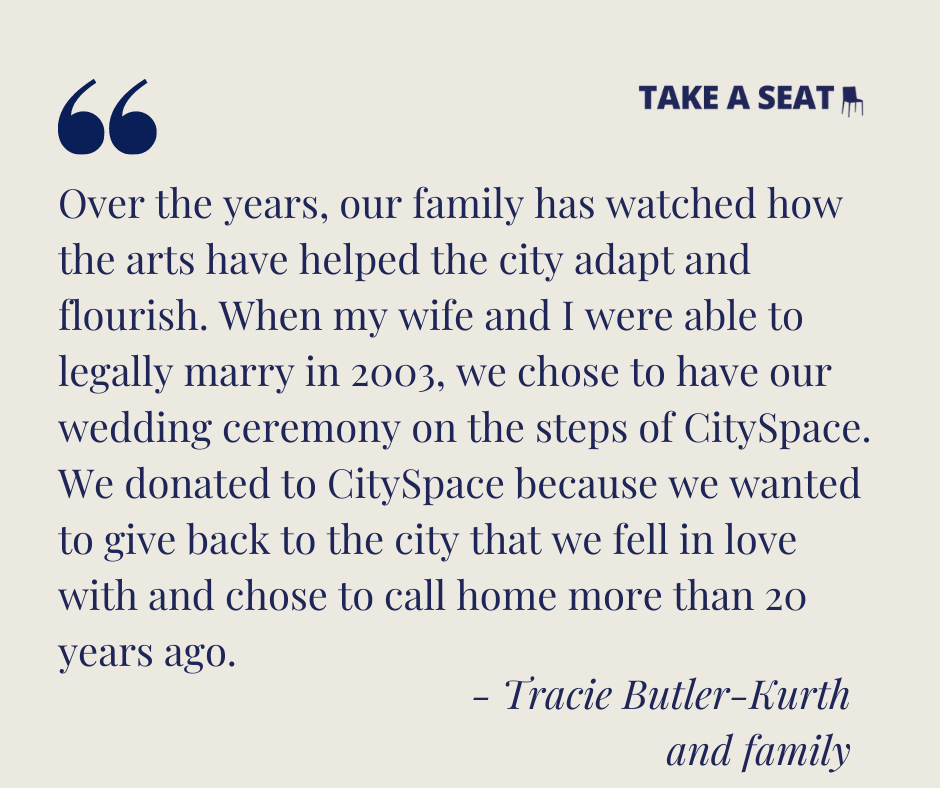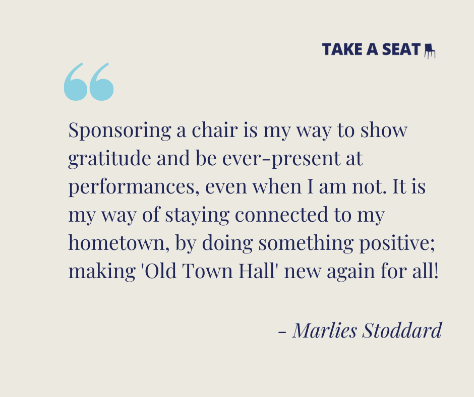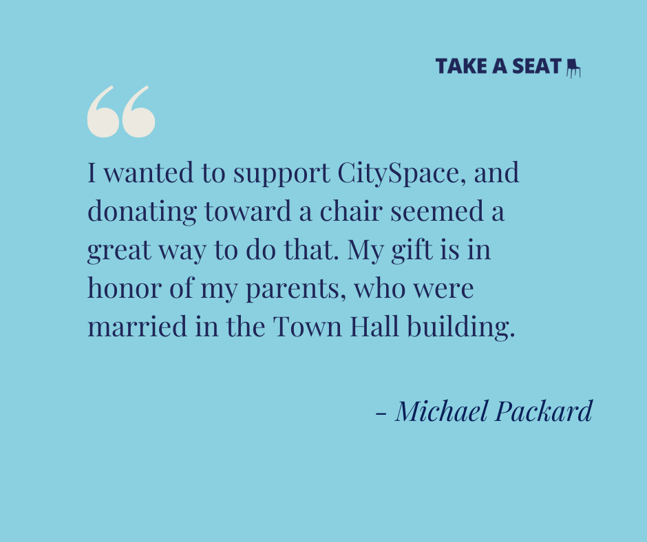 For a donation of $500, you can sponsor a chair that will include a plaque, your name, or the name of a loved one in tribute on the back. Commemorate a loved one, an artist, an anniversary, a birthday, an idea… and help CitySpace bring Old Town Hall back to life!
